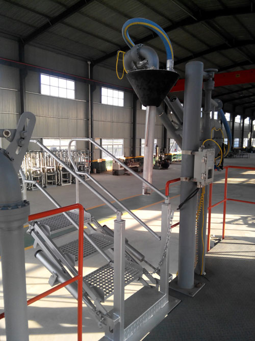 實(shí)現(xiàn)裝卸臂伸入槽車內(nèi),鋁合金垂管克服了鋼質(zhì)材料與罐車碰撞可能產(chǎn)生的危害。