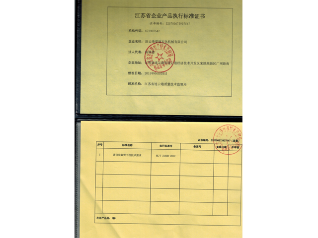 企業(yè)產(chǎn)品執(zhí)行標(biāo)準(zhǔn)證書